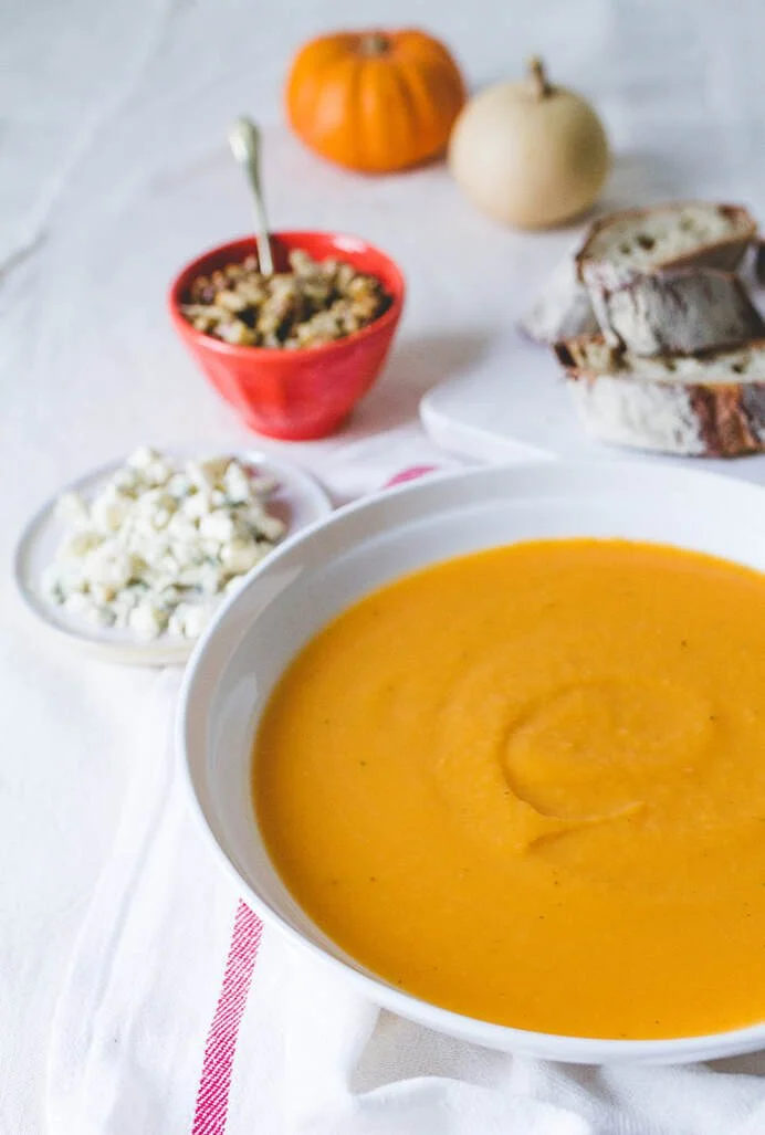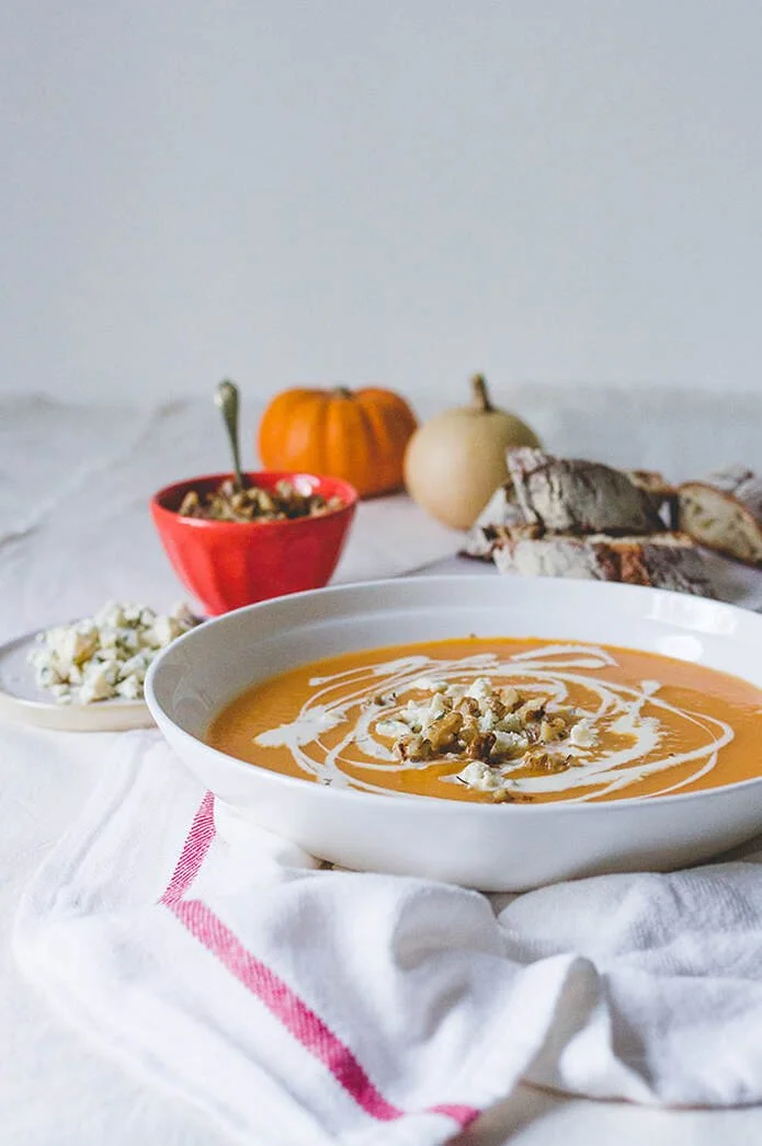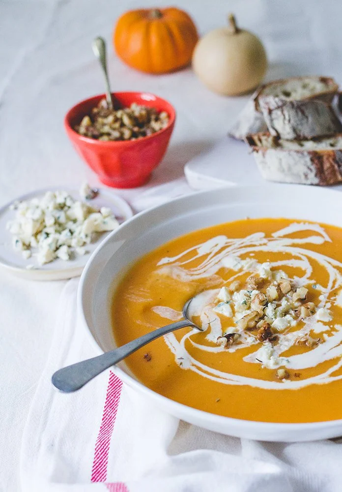 Butternut Soup with Blue Cheese and Toasted Walnuts